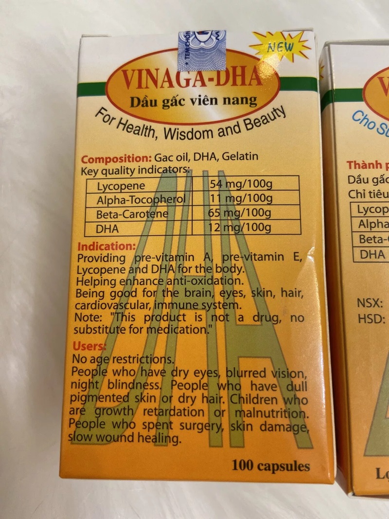 Be the first to review “Lot 4 Boxes Vinaga DHA Gac Oil Momordian Cochinchinensis Oil”