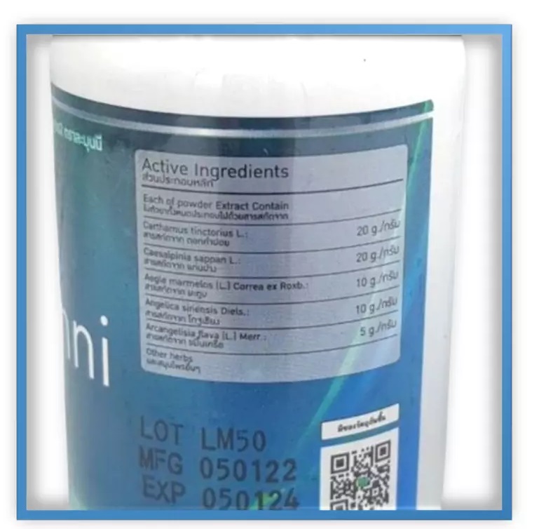Ingredients: iron pestle herb, Thai Kham flower, Kaen Kae Lae, Thai anchor, Phipek anchor, Makhampom fruit and more than 30 other herbs.